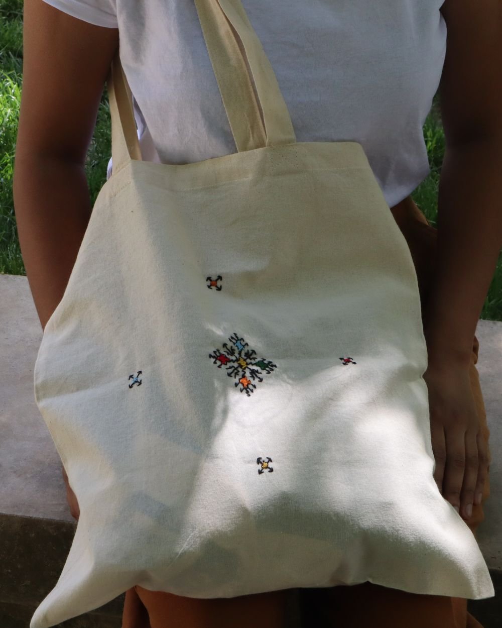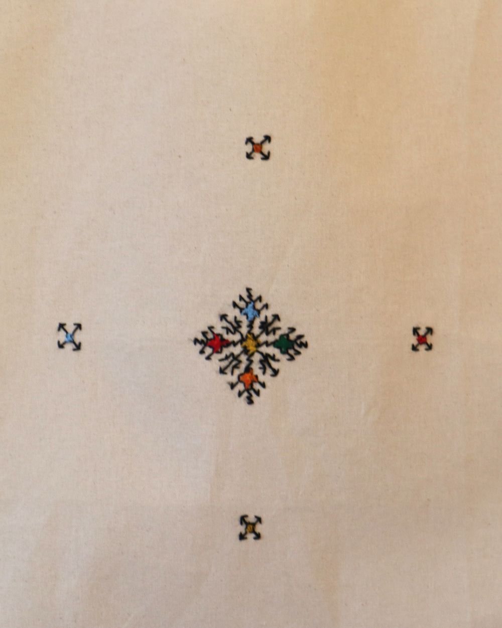 Découvrez notre tote bag Tarz Al Meknassi à 5 motifs – Edition 1, brodé entièrement à la main par un duo mère-fille. Chaque motif reflète l’élégance géométrique typique de Meknès et est soigneusement réalisé dans